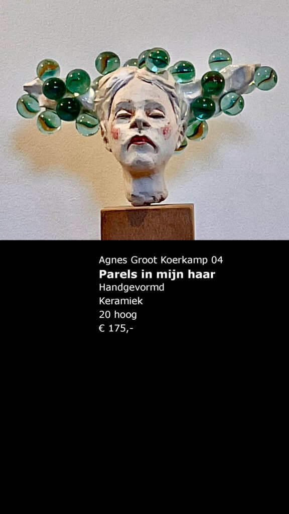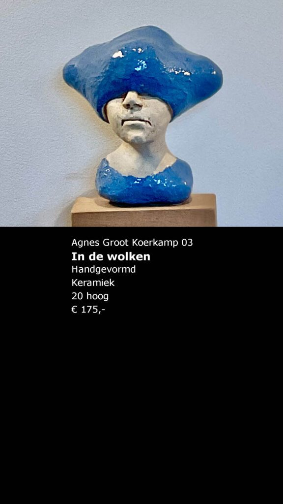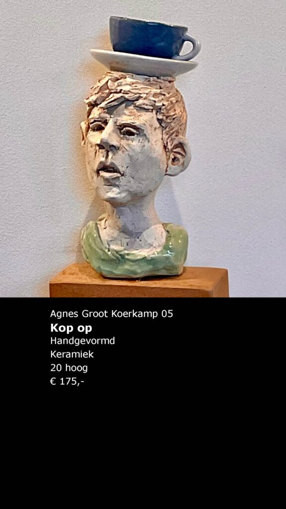 Werk: Agnes heeft een atelier in Zwolle in het monumentale pand DOAS. Heeft bij diverse keramisten haar kennis, techniek en ervaring opgedaan. Maakt voornamelijk keramische werken, beelden, portretten en installaties en past hierbij verschillende technieken toe. Zo wordt het keramiek op verschillende temperaturen gebakken en op diverse manieren afgewerkt d.m.v. engobes, oxides en glazuur.