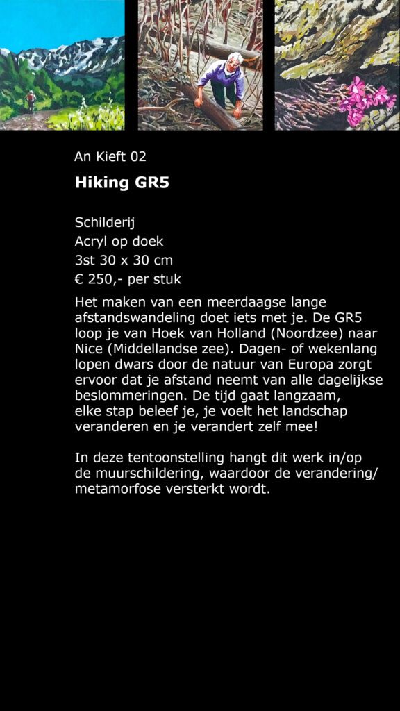 Inspiratie vind ik in mijn tuin en tijdens de lange wandelingen die ik maak. Ik werk graag in series, een twee- of drieluik, zodat het oog heen en weer kan dwalen en steeds nieuwe kanten van een thema kan ontdekken.