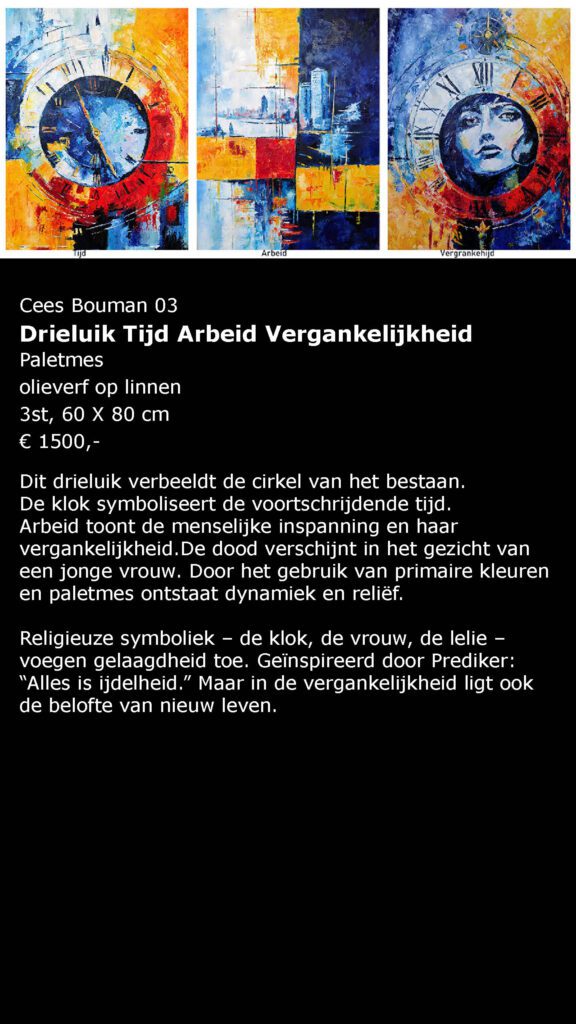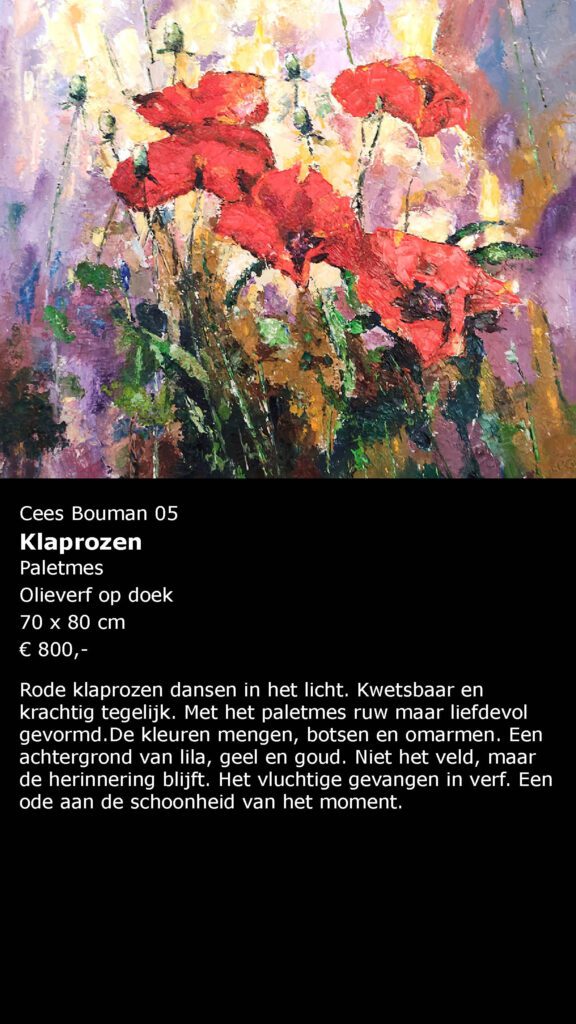 Cees heeft zijn eigen handschrift gevonden, zijn eigen technische methoden met behulp van een paletmes, waardoor het mogelijk is om volumineus, meer lagen te schilderen.