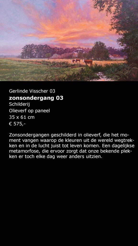 Toen ik klein was tekenende ik op de basisschool mijn tekenboekjes al snel vol. Op de middelbare school was dit zeker niet anders; in sommige schriften stonden meer tekeningen dan schoolwerk. Mijn keus voor de studie als Specialist Schilder aan het CIBAP in Zwolle was dan ook een makkelijke beslissing. Om nog meer te kunnen leren over de techniek van figuratief schilderen in olieverf heb ik gekozen nog een studie te doen aan de Klassieke Academie in Groningen. Waar ik in 2024, na 5 leerzame jaren, ben afgestudeerd met een serie landschappen.