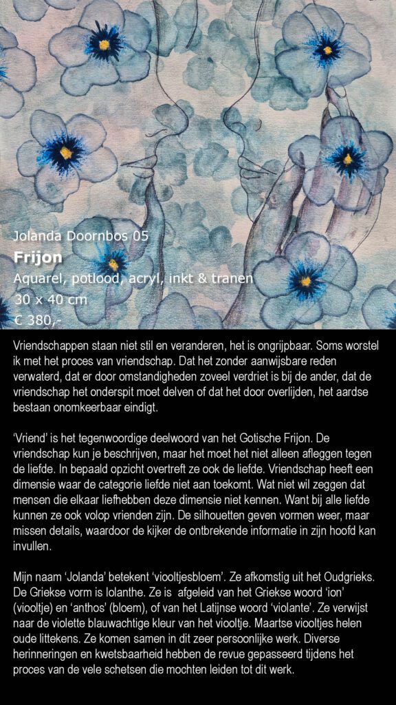 Geboren in Rotterdam (1983) en heeft opleiding ArtEZ docent fine arts afgerond in 2014 en een lasdiploma. Jolanda is docent en haar werk kenmerkt zich door creativiteit en het vertellen van verhalen in de breedste zin van het woord waarin zij zich laat inspireren door haar levensverhaal waarin zij als enig kind is opgegroeid met twee verstandelijk beperkte ouders. Ze schrijft, maakt tekeningen en design objecten en sieraden van hout gecombineerd met metaal. Haar verhaaltjes in de objecten komen vooral naar voren in het hergebruiken van materiaal of bomen die rijp waren voor de versnipperaar. Het terugkerende thema: Het oude is voorbij gegaan, omarm het en geef het door.