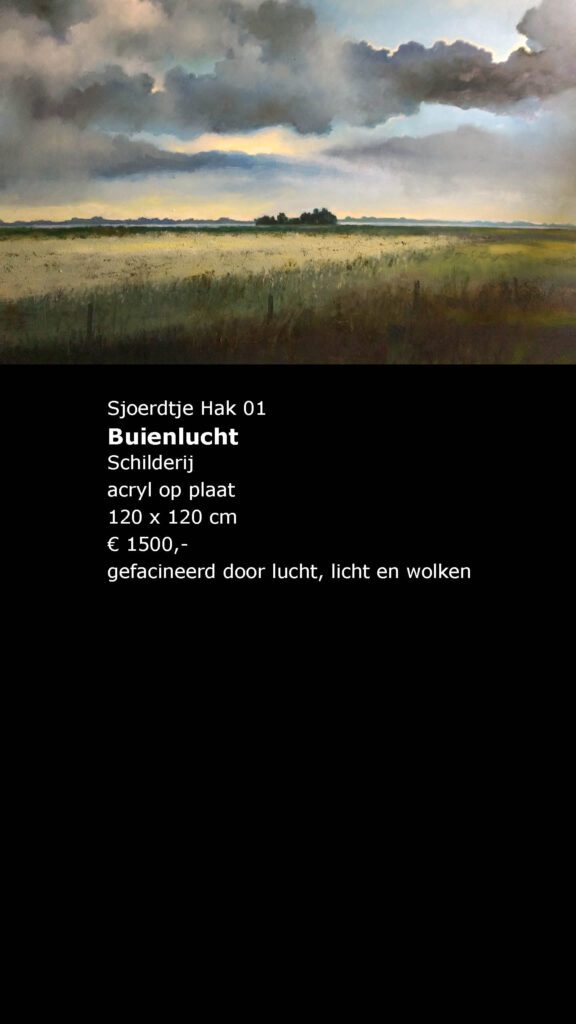 Mijn landschappen hebben meestal te maken met water. Rivieren,kusten en moerassen. Water brengt leven, ook in het landschap. Boven dit landschap de grote luchten. Meestal is de horizon laag, zodat er ruimte is voor wolkenpartijen. Met name het Noordelijke landschap. In de loop der tijd zijn de luchten meer uitgediept door studie en tekening. Buiten worden schetsen gemaakt en op het atelier uitgewerkt. Het werk is vele malen geëxposeerd in binnen en buitenland. Het bevindt zich in gemeentelijke en provinciale collecties, bij particulieren en musea.