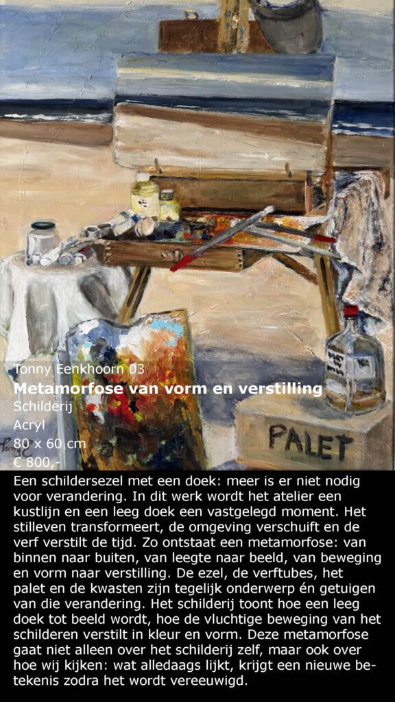 Vorig jaar heb ik Plein Air geschilderd op het strand van Domburg en mijn bedoeling is om dat vaker te gaan doen. Dat is weer een heel ander proces, snel schilderen met een losse toets, beginnend met donker en licht, van grof naar fijner.
